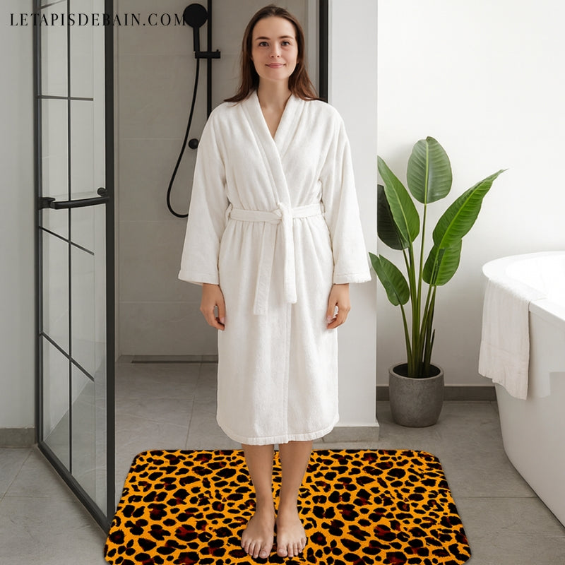 Ton tapis de bain léopard, aussi sauvage que sécurisé, prêt à embellir ta salle de bain et assurer ton confort.