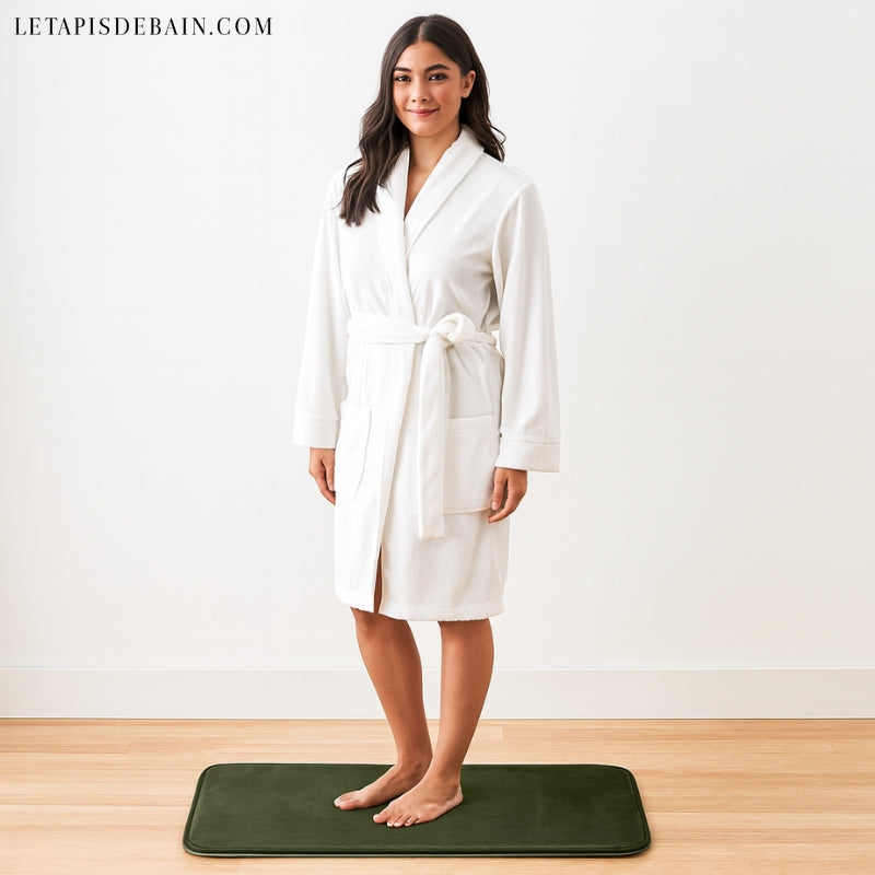 Un tapis de bain vert olive de qualité supérieure, conçu pour rehausser le style et le confort de ta salle de bain.